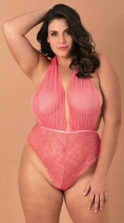 You looking to get tied up? Turn up the heat in this provocative white teddy featuring halter straps, a strappy neckline with a lace applique, silver O-ring accents, open cups, adjustable spaghetti straps, a strappy cage bodice, lace applique detailing, a back hook closure, an open strappy crotch, and a strappy open back with booty shaping straps.